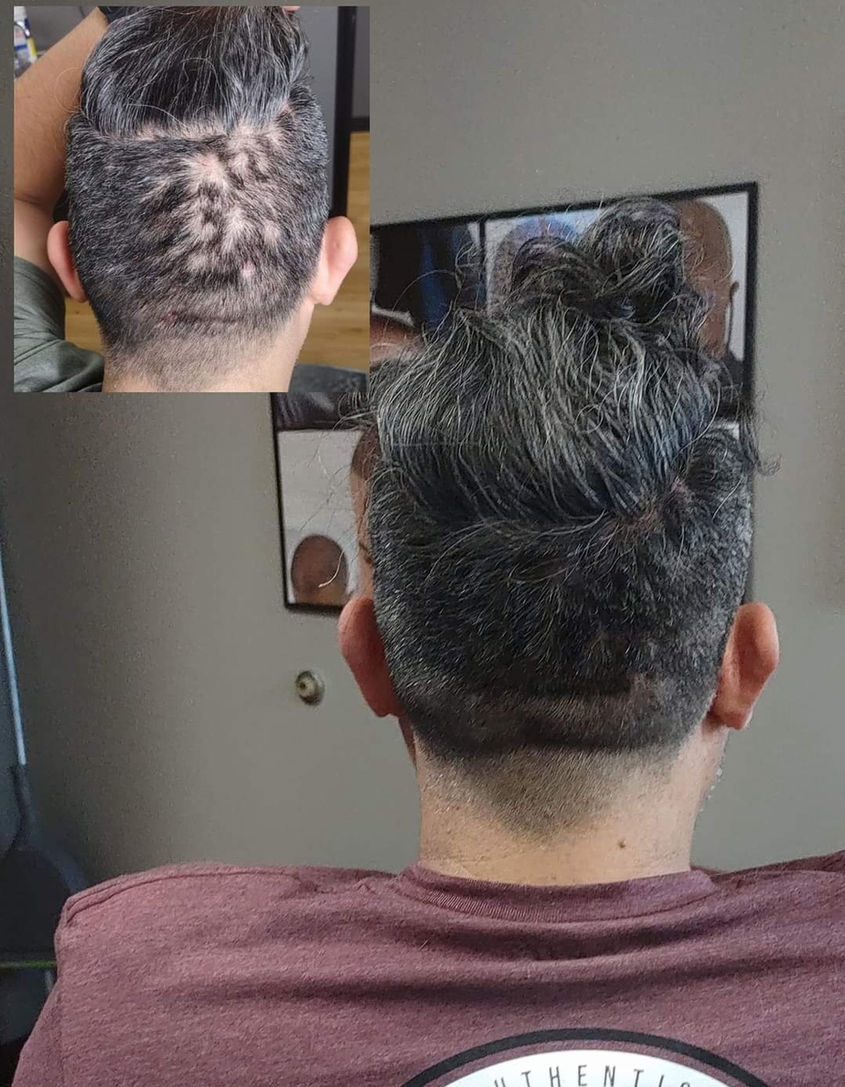 When it comes to your appearance you deserve the best care that money can buy. Welcome to The Scalp Micro Center where certified technicians offer the scalp micropigmentation procedure to help you with your hair loss solution. Scalp micropigmentation is a non-invasive treatment that uses detailed micro-needles to deposit pigment into the scalp. The result creates the exact replica of tiny hair follicles to create the look of a short buzz cut or a fuller look to existing hair. Scalp Micro can benefit men and woman both suffering from hair thinning, receding hairlines, scars, alopecia spotting and any other balding spots you may have. Check out our gallery of the changes made with scalp micropigmentation.